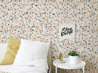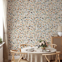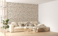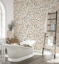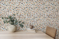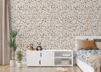 wallpaper, featuring a colorful mosaic stone background. The terrazzo texture wallpaper is a symphony of color, ideal for adding a dynamic, eclectic edge to your decor. Each piece is a kaleidoscope, creating a visual feast that captivates and inspires. Perfect for anyone looking to infuse their environment with vibrancy, this terrazzo wallpaper is a statement of sophistication. Let your walls express a creative, spirited style with this exquisite terrazzo wallpaper.