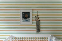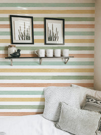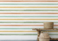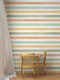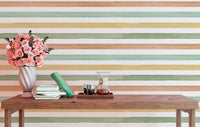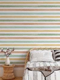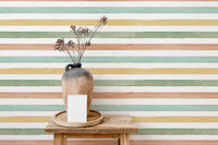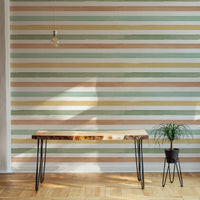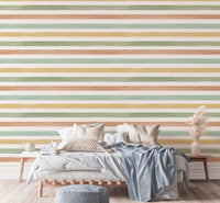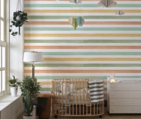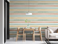 Infuse your room with a spectrum of hues using our multicolor wallpaper, featuring an abstract watercolor stripe pattern. Perfect for adding a splash of vibrancy, this design marries the spontaneous beauty of watercolors with the timeless charm of stripes. This multicolor wallpaper is an ideal backdrop for those seeking a lively atmosphere. Every wall becomes a statement piece, reflecting a dynamic yet harmonious blend of colors that dance across your room, setting a creative and inspiring mood.