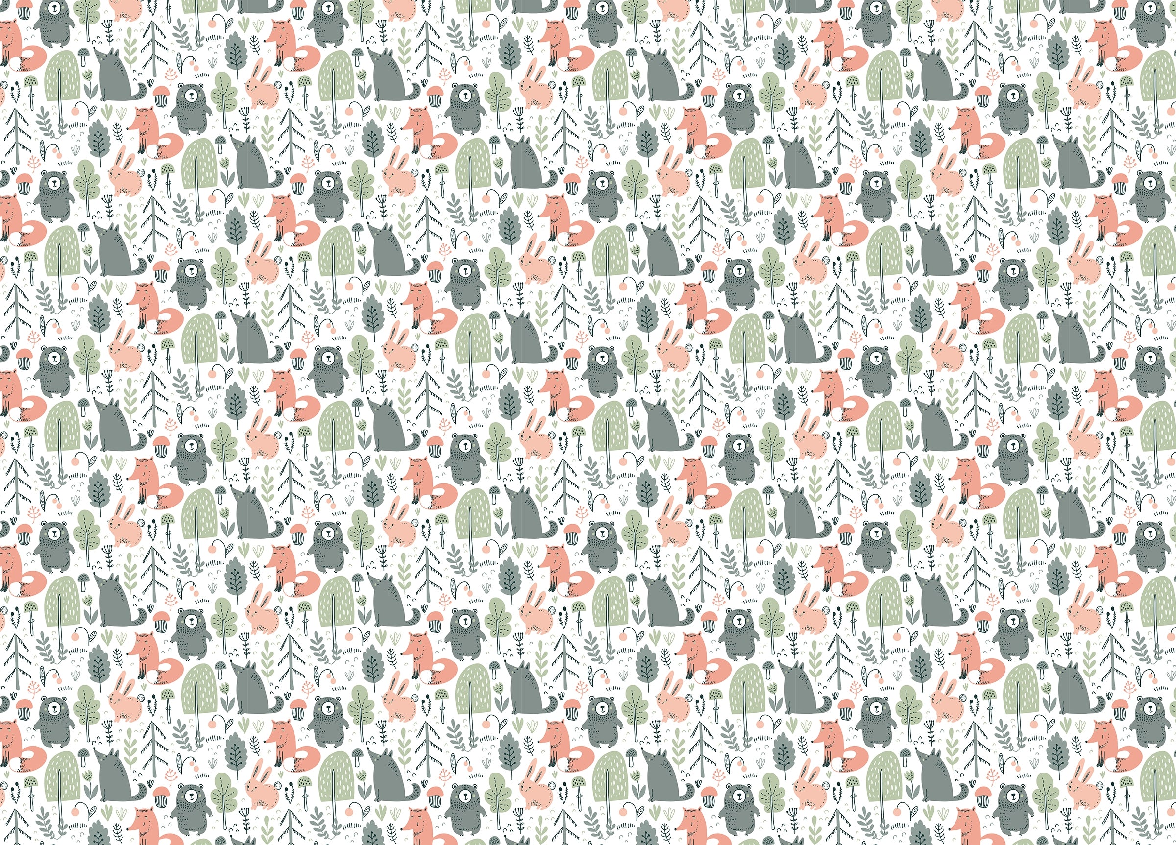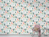 Forest-themed kids' wallpaper with vibrant animal patterns