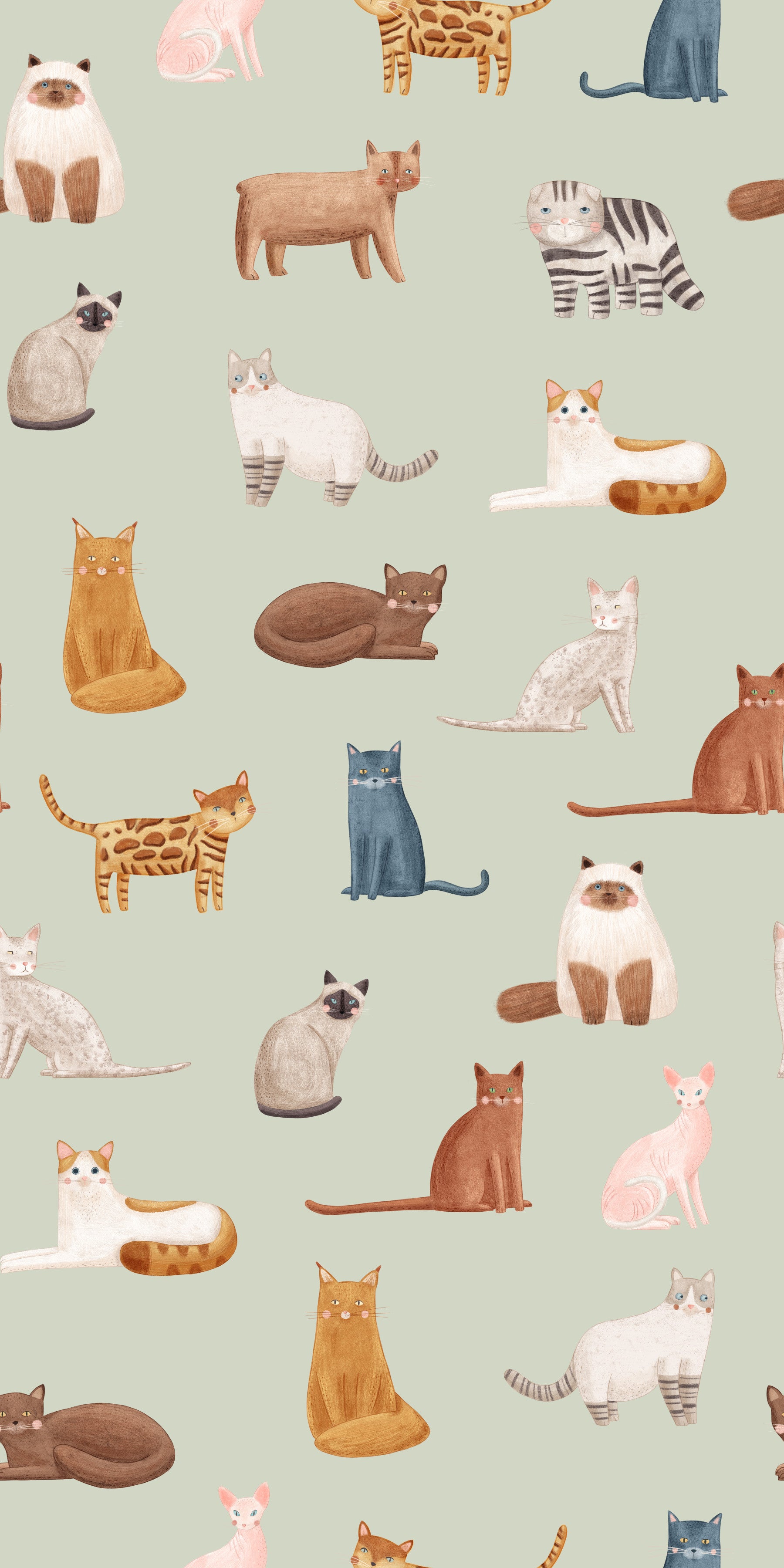 Creating a whimsical space for your little one starts with playful patterns that spark the imagination. This nursery wallpaper features an array of hand-painted feline characters, from spotted Bengals to fluffy Ragdolls, set against a calming sage green backdrop. Each artistic illustration offers a gentle, friendly aesthetic, perfect for a cozy and creative environment. The soft color palette provides a serene atmosphere for sleep while the diverse cat breeds encourage curiosity during play. Designed with a timeless charm, this wall mural serves as a delightful backdrop that grows with your child, bringing a touch of nature-inspired warmth to the room.