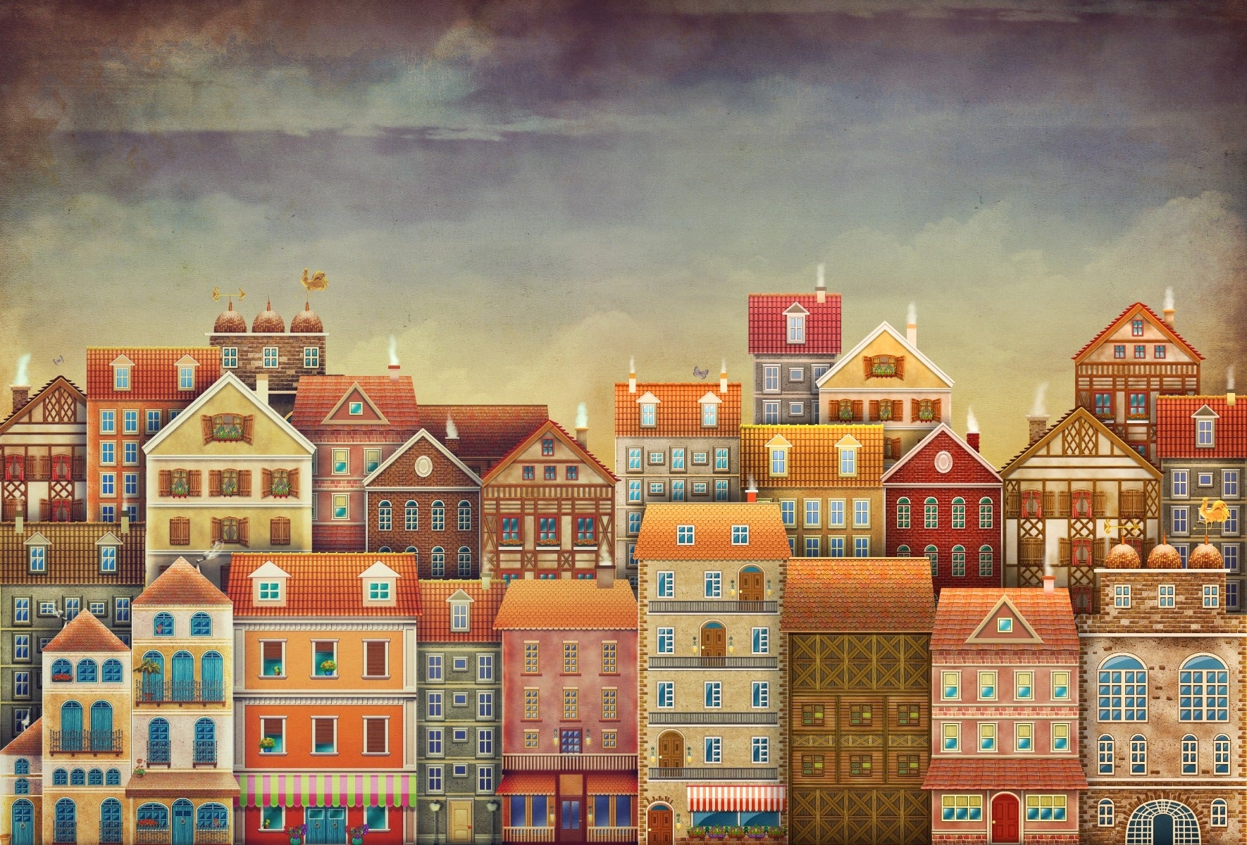 Whimsical village wallpaper