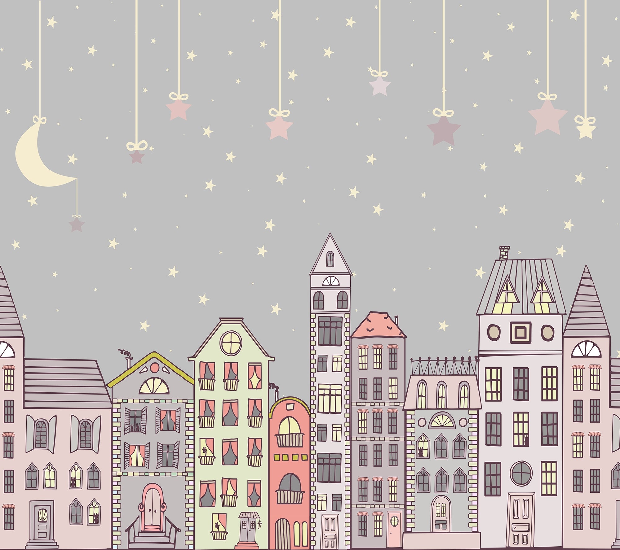Cuteness quarters mural with playful designs for kids’ spaces.