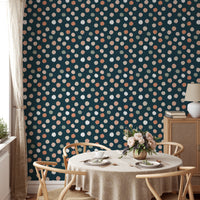 Infuse your walls with the artistic flair of our dark blue abstract pattern irregular polka dots wallpaper. This unique abstract wallpaper merges playful irregularity with elegant design, creating a vibrant yet sophisticated statement in any room. The dynamic polka dots dance across a deep blue backdrop, offering a mesmerizing visual that captivates and delights. It's a bold choice for those who appreciate a blend of whimsy and contemporary style in their surroundings. Perfect for a striking feature wall or a full-room makeover, this wallpaper is sure to impress.