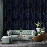 Modern dark blue Deco wallpaper with easy application.
