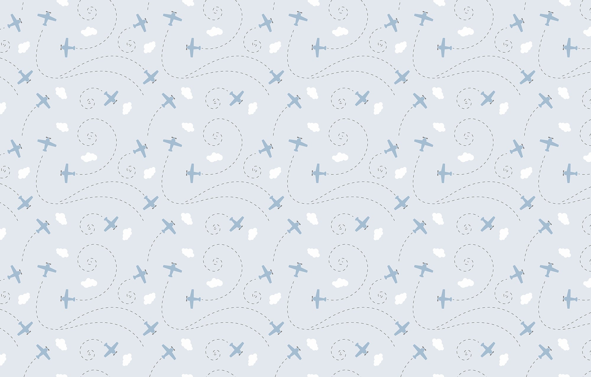 The whimsical pattern of airplanes, fluffy clouds, and playful dashed flight paths on the Daydream Drift Light Blue Nursery Wallpaper creates a dreamy and calming atmosphere. With soft blue tones, the wallpaper brings soothing effects to nurseries, playrooms, or children's bedrooms. The beautiful illustrations invite imagination and adventure and so become an engaging option for kids. Easy to install and designed for durability, this nursery wallpaper provides a wonderful blend of style and functionality to create a serene backdrop for cherished moments.