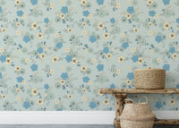 Ditsy Blooms Pastel Blue Wallpaper