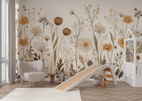 Bring the beauty of nature indoors with this Earthy Wildflower Pattern Wallpaper. Soft shades of beige, brown, and muted gold blend seamlessly to create a gentle floral landscape across your walls. Delicate wildflowers bloom in every corner, giving rooms a calm and natural charm. This flower wallpaper suits living rooms, bedrooms, or even cozy reading nooks. Its subtle design adds a warm touch without overpowering your space. Whether you love rustic vibes or botanical themes, this wallpaper fits effortlessly. Enjoy the timeless beauty of flowers year-round with this artistic wall covering that celebrates earthy colors and floral simplicity.