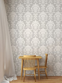 Elegant Gray Color Repeat Pattern Damask Wallpaper