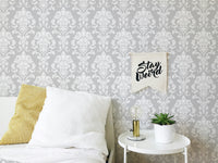 Discover the sublime sophistication of damask wallpaper, reimagined in a serene gray palette. This elegant gray wallpaper features a harmonious repeat pattern that whispers classic elegance. Each roll unfurls a story of timeless design, blending with your home's unique character. Perfect for those who appreciate the finesse of understated luxury, this wallpaper is more than a mere backdrop; it's a celebration of design that stands the test of time. Adorn your walls with the grace of gray damask and watch as your rooms unfold into a narrative of style and poise.
