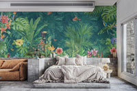 This exotic tropical jungle wallpaper mural brings the life of the jungle into any room. It will add bright green foliage with colorful birds and delicate flowers and could only suit someone looking for a different addition that brings the heart of the rainforest into their room. The intricate patterns of leaves and the bright, bold colors of the birds make this mural a showstopper. Made of premium materials, this one promises to last with an incredibly beautiful display. A perfect addition to a tropical feel, it makes a fantastic focal point in your place. This one's right for the tropical wallpaper enthusiast. Free shipping on orders today!