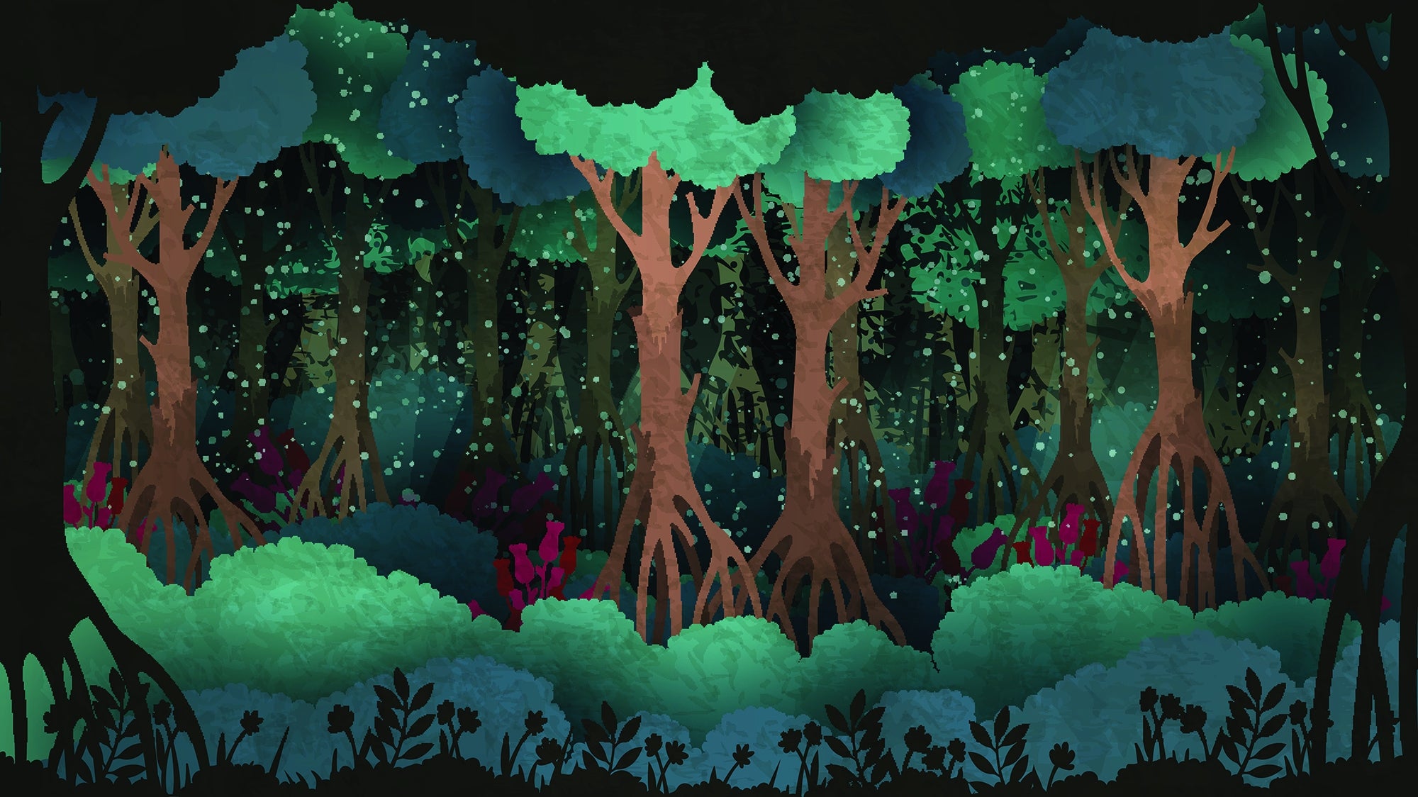 Fairytale-inspired forest wallpaper scene