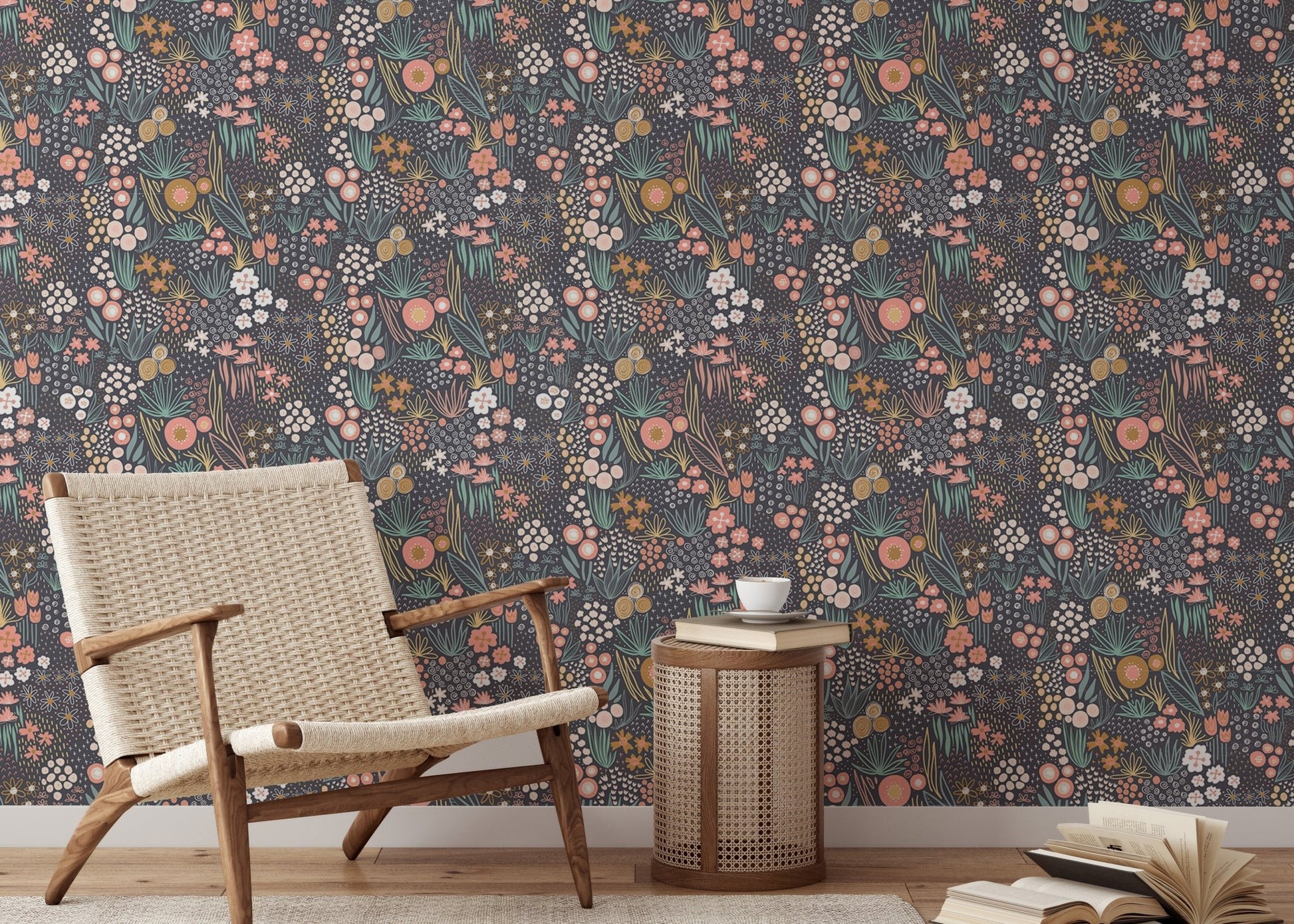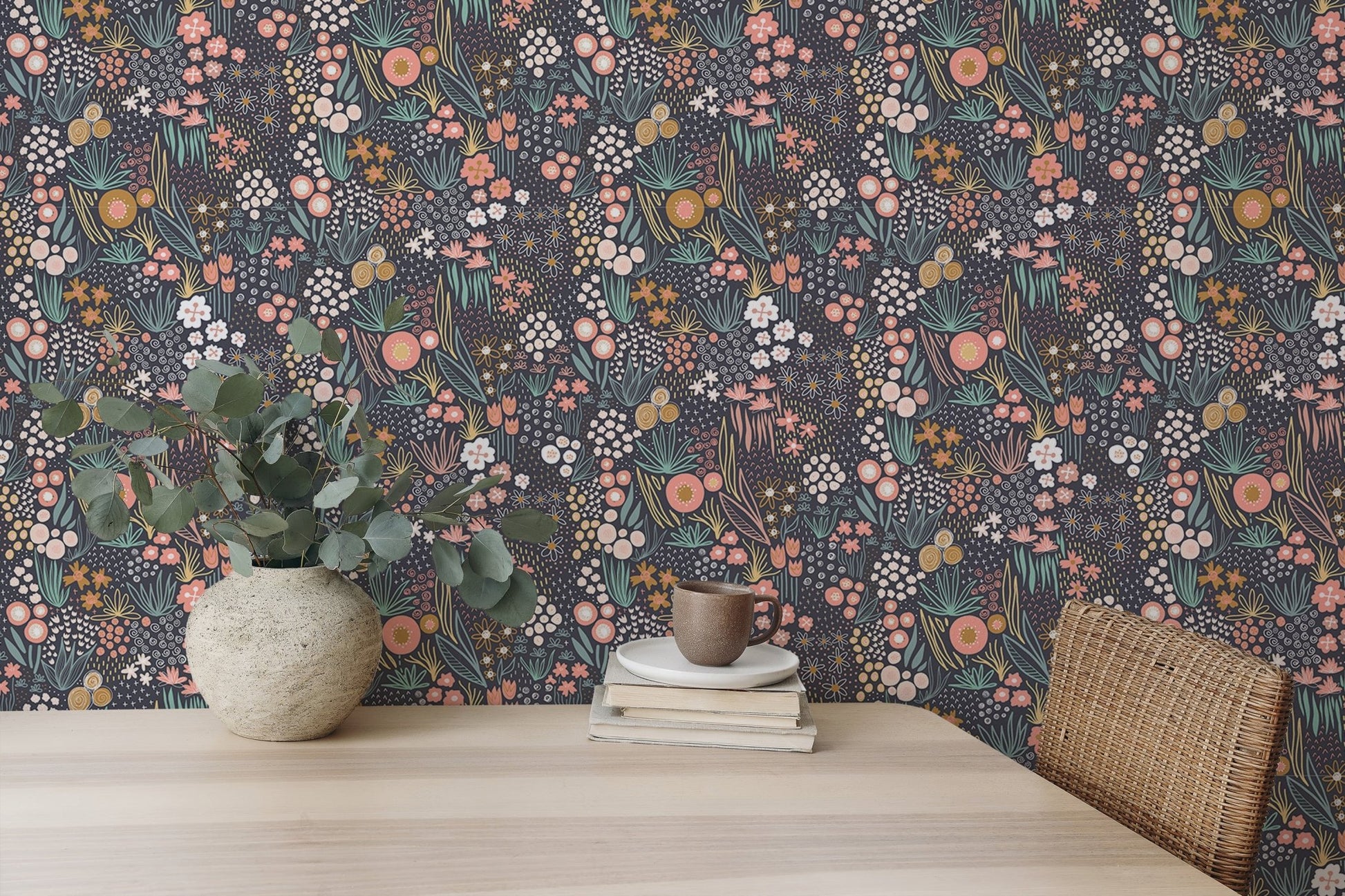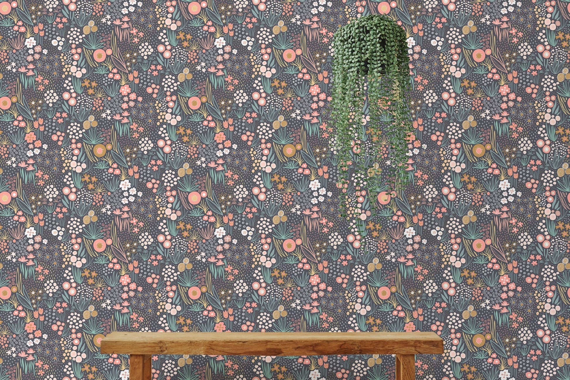 Field Pastel Colorful Repeat Pattern Flower Wallpaper