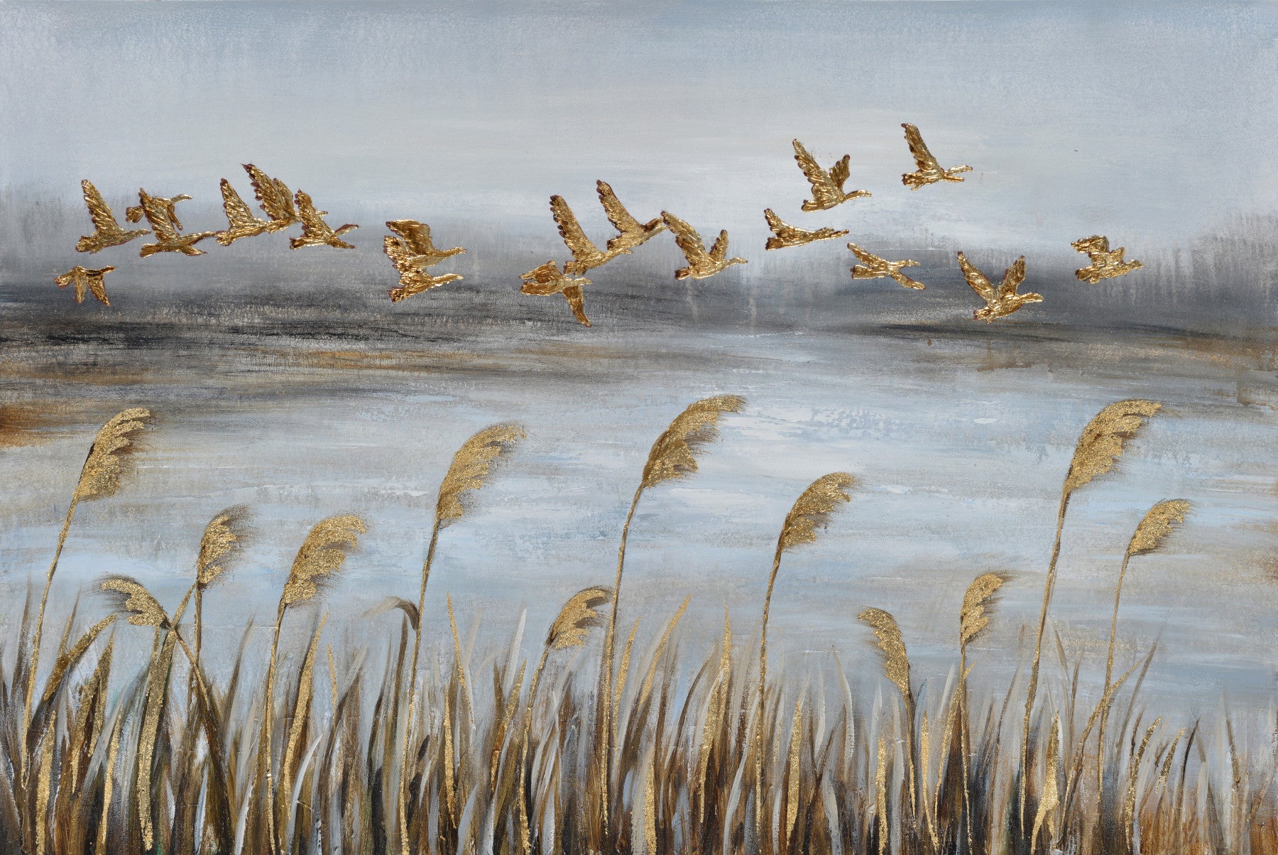 Flying Flock with Gold Leaf Wall Mural - Wallanza