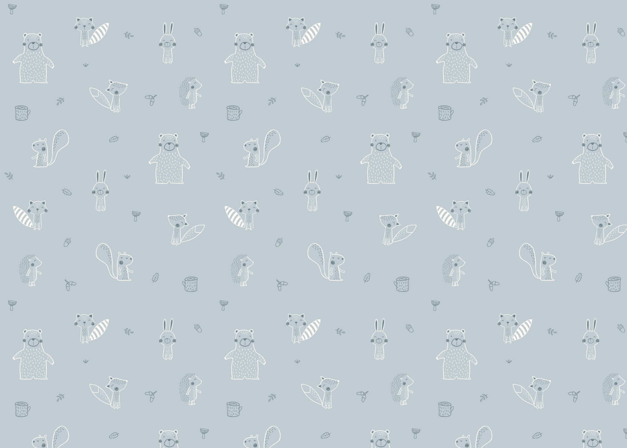 Learn more about Blue Forest Friends wallpaper murals ideal for kids rooms. This charming pattern includes whimsical woodland animals that will inspire your little one. The light blue false color background and the charming characters give a relaxed atmosphere. Perfect for your kids nurseries or playrooms, this wallpaper just peels and sticks to transform any wall into a magical wonderland. Bears, rabbits, or raccoons—whatever your child loves most, they'll be socked with glee to see their room come alive like a forest adventure. Place your order and add a bit of woodland cheer to any room in your house.