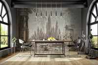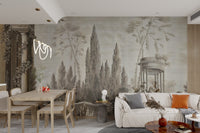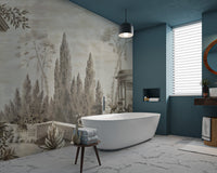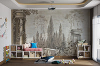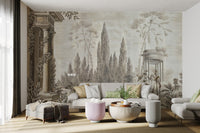 Bring classical elegance into your space with Fortified Dusky Arboretum Wallpaper Murals. This tree wallpaper blends muted sepia tones, soft gray hues, and deep earthy browns, creating a sophisticated landscape filled with lush foliage, ancient columns, and delicate architectural details. The hand-drawn botanical elements and misty woodland scenery add a serene, vintage charm to any room. Ideal for living rooms, bedrooms, and offices, this mural transforms walls into artistic masterpieces. The neutral color palette complements both modern and classic interiors, offering a refined yet natural aesthetic. Perfect for those who appreciate historic landscapes with a timeless appeal.