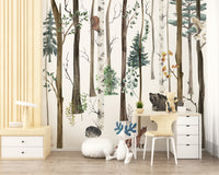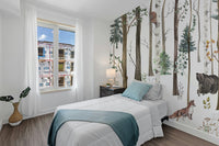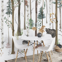 The Fox & Bear in Snow Forest wallpaper mural brings a whimsical, wintery adventure to any child's room. Featuring adorable foxes and playful bears in a serene snow-covered forest, this enchanting design creates a magical escape for young imaginations. The soft, cool tones of the mural evoke a peaceful atmosphere, making it the perfect kids' wallpaper for nurseries, playrooms, or bedrooms. It’s not just a wallpaper; it's an invitation to explore a world of nature and animal friends, inspiring creativity and wonder. Ideal for any child who dreams of snowy landscapes and animal adventures!
