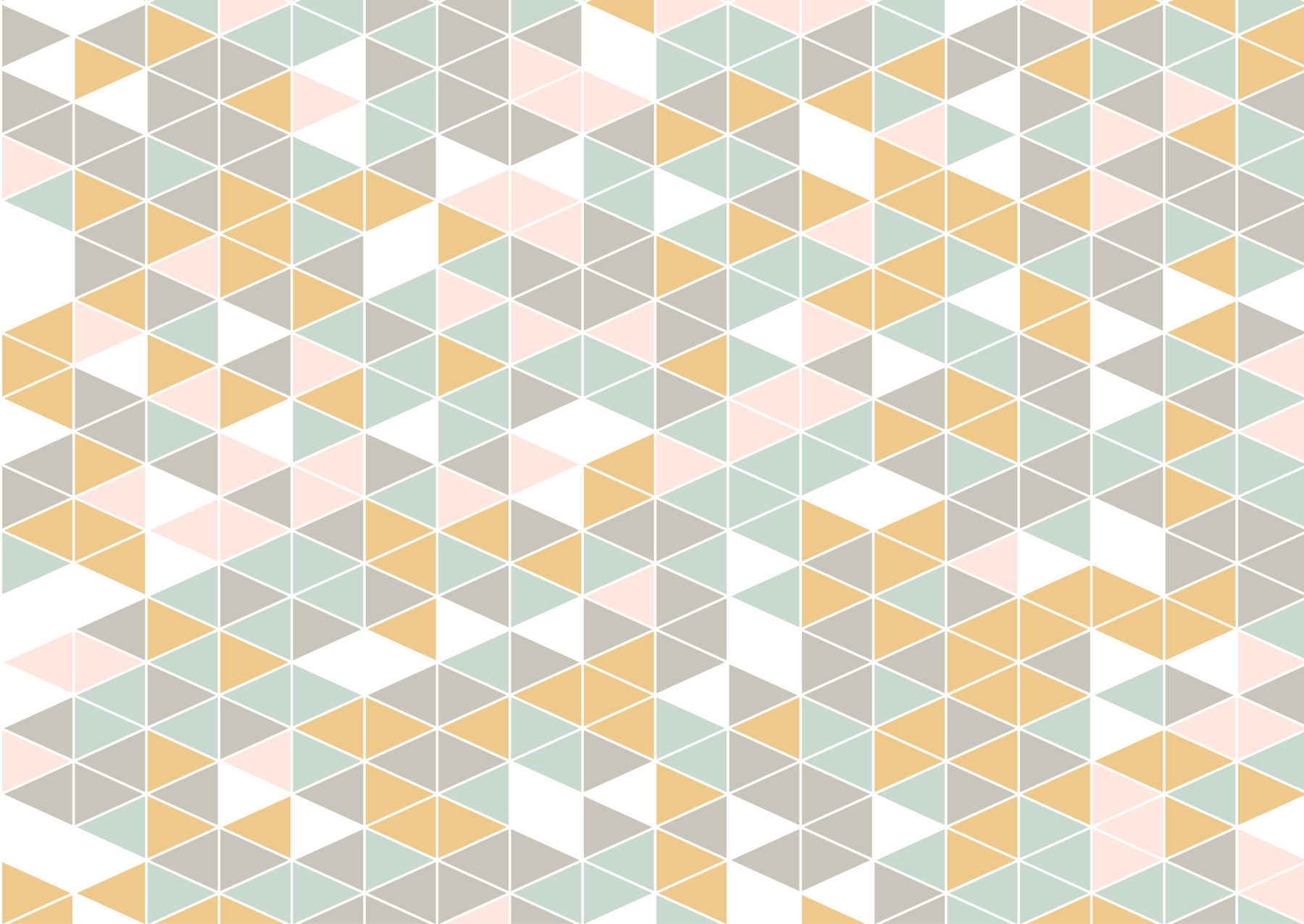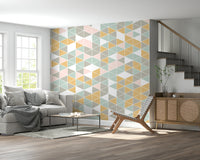 Introduce a touch of modern flair with this captivating geometric design. The clean lines and precise arrangement of triangles create a balanced visual. The muted palette, featuring shades of gray, pink, teal, and yellow, offers a calm and sophisticated aesthetic. Ideal wallpaper for walls in living rooms, bedrooms, or even a home office. This design will blend seamlessly with Scandinavian and minimalist interiors, bringing a clean and fresh ambiance to your space.