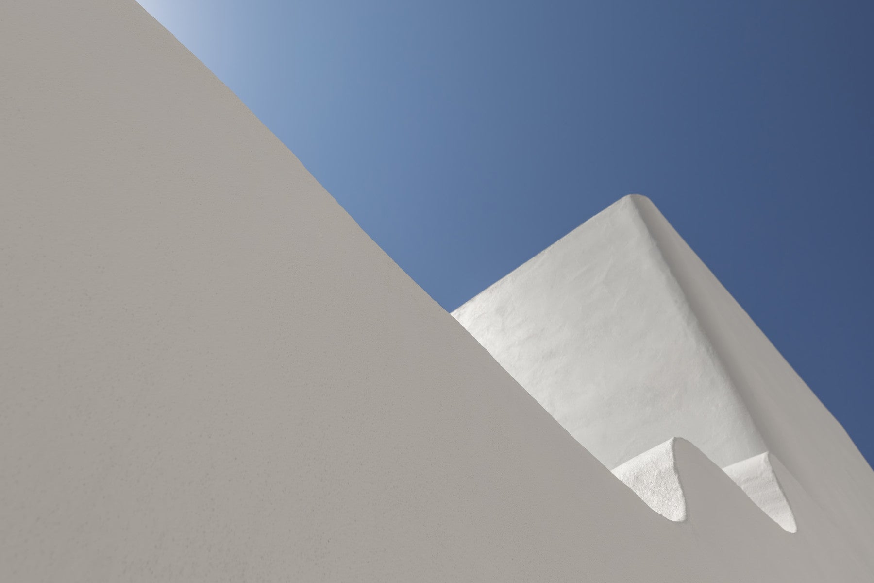 The wallpaper captures a modern, architectural feel with stark white shapes contrasted against a vibrant blue sky. The sharp lines and simple color palette create a visually compelling design. This architectural wallpaper for walls will add a touch of sophistication to any room. Consider it for a modern office, hallway, or even a stylish bathroom. The minimalist design does not distract but rather enhance the space with its subtle statement and complements contemporary interiors.