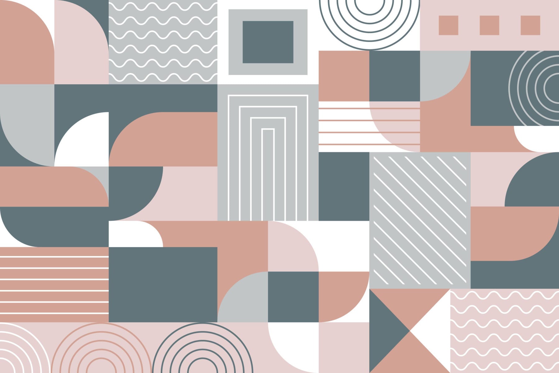 Invite a touch of structured beauty with this geometric wallpaper for walls. The arrangement of circles, squares, and lines creates an eye-pleasing pattern. Soft blush pink, cool gray, and crisp white shapes give a stylish and modern vibe. Enhance the look of your living room, bedroom, or even a home office. This design brings a balanced and calm presence, working well with both minimalist and eclectic decor.