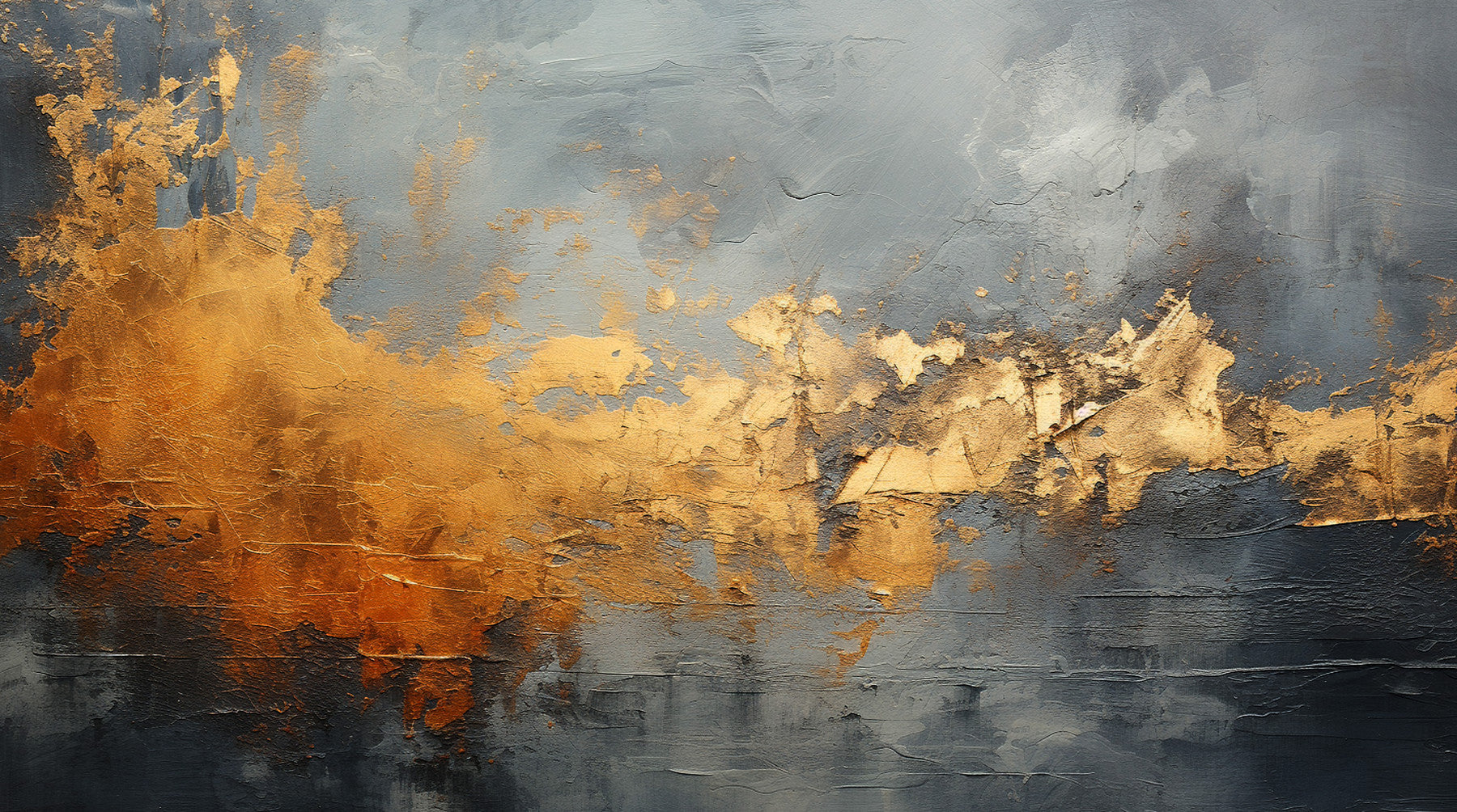 Transform your space with this stunning abstract design. Bold strokes of metallic gold meet soothing gray tones, creating an intriguing visual texture. This wallpaper for walls brings a touch of luxury and modern art to any room. Imagine it in your living room or bedroom, where it adds warmth and visual interest, especially with natural light that catches the metallic pigments. This pattern elevates your interior design.