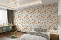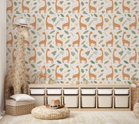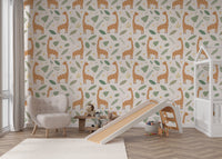 This wallpaper mural is terrific for parents who want to introduce fun and nature into the rooms of little ones. It comes in a fascinating pattern of giraffes in their perfect green backdrop, so you can easily suggest it for playrooms, nurseries, or even daycare centers. The soft colors create a serene environment, while the cheerful giraffes bring an adorable focal point. Mural depiction to add lively play elements or to create a jungle theme. Whether planning a jungle theme, adding on the playful theme, or doing both, this mural will surely attract and delight animal-loving crowds. Get yours today and make your child a happy place!