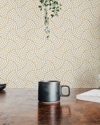 Gold Color Circle Abstract Wave Stripe Luxury Wallpaper