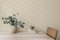 Experience effortless sophistication with our gold color circle abstract wave stripe luxury removable wallpaper. This design merges the ease of a peel-and-stick application with the opulence of a shimmering gold pattern. Its abstract wave and circle stripes bring a fresh dynamism to any room, proving that luxury and simplicity can coexist beautifully. Whether revamping an office or adding a splash of grandeur to your living area, this removable wallpaper is the smart choice for a quick, chic update.