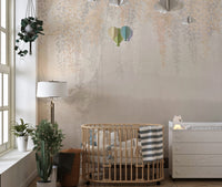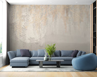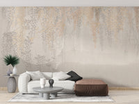 Golden and Grey Hanging Leaves Wallpaper Murals