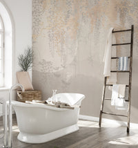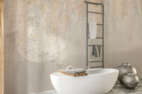 Our Sun-kissed leaves will add a golden touch to your home decor. This wallpaper mural is filled with intricate golden and grey leaves that glow in the sunlight. The leaf illustrations, set against a pale orange background, radiate a warm energy all over. The golden and gray hanging Leaves Wallpaper mural is ideal for a hallway, meditation area, or dining room in your home. The art is simple and made with a pastel color palette to modernize any space with the energy of heat and warmth, similar to the energy of the sun. Order this mural from us and you can be sure it will captivate you and your guests.