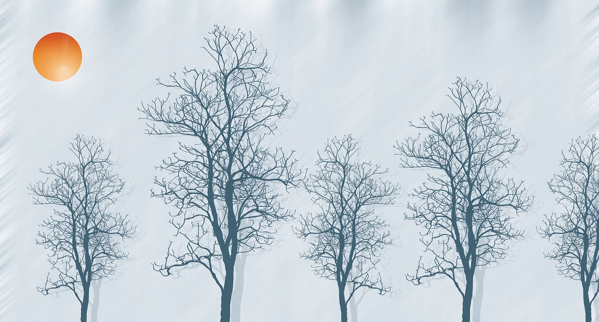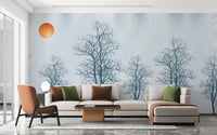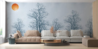 Gray Forest Crimson Sun Wallpaper Mural