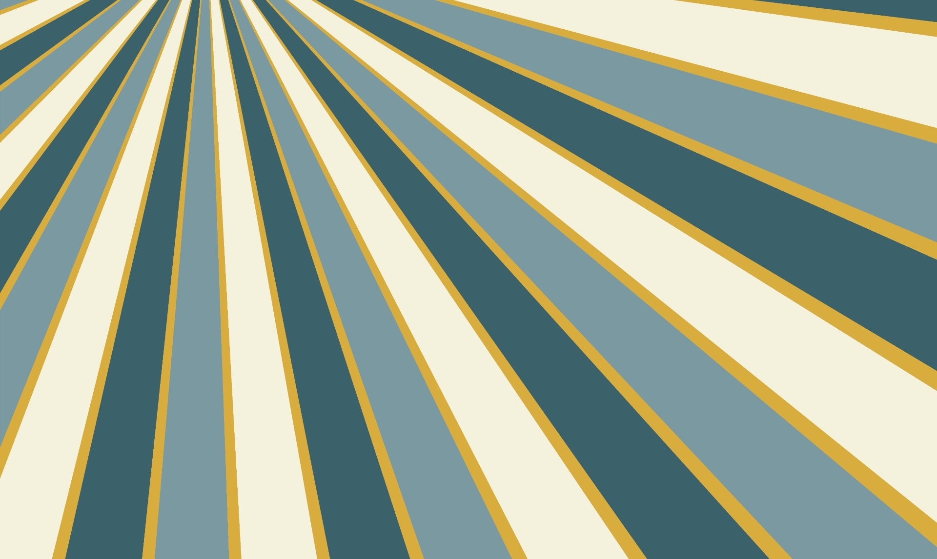 Radiating striped pattern mural in green, cream, and gold accents