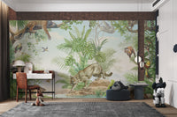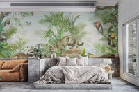 Green tropical jungle wildlife wallpaper will bring the lush look and feel of a jungle right into your bedroom. This beautiful wallpaper boasts pictures of exotic animals and bright greenery that recreate a rainforest experience directly on your walls. Sophisticated, detailed illustrations of wildlife, including leopards, toucans, and sloths, are all included in this incredible design to create a sense of adventure. Rich green tones capture the beauty of nature. They can coexist magically with other elements in a living room or bedroom and create an atmosphere of serenity in study spaces. Bring in that wild touch with this eye-catching jungle wallpaper. Shop now and get free shipping on your order!