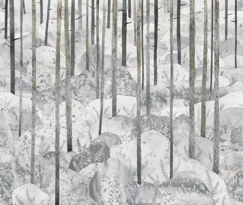 Grey forest woodland wallpaper for serene interiors