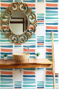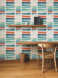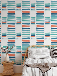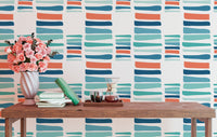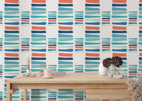 The hand drawn textured maritime stripes colorful wallpaper is a refreshing take on classic stripe wallpaper. This design boasts a spectrum of colors that bring a handcrafted touch to interiors. Each stripe's unique texture and varied color palette add a contemporary twist, making it a fitting choice for those seeking a lively atmosphere. It's a delightful backdrop for rooms where creativity and vibrancy are encouraged. Whether you're adorning a feature wall or wrapping an entire room, this wallpaper is sure to infuse personality and a splash of fun into your home.