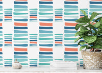 Hand Drawn Textured Maritime Stripes Colorful Wallpaper