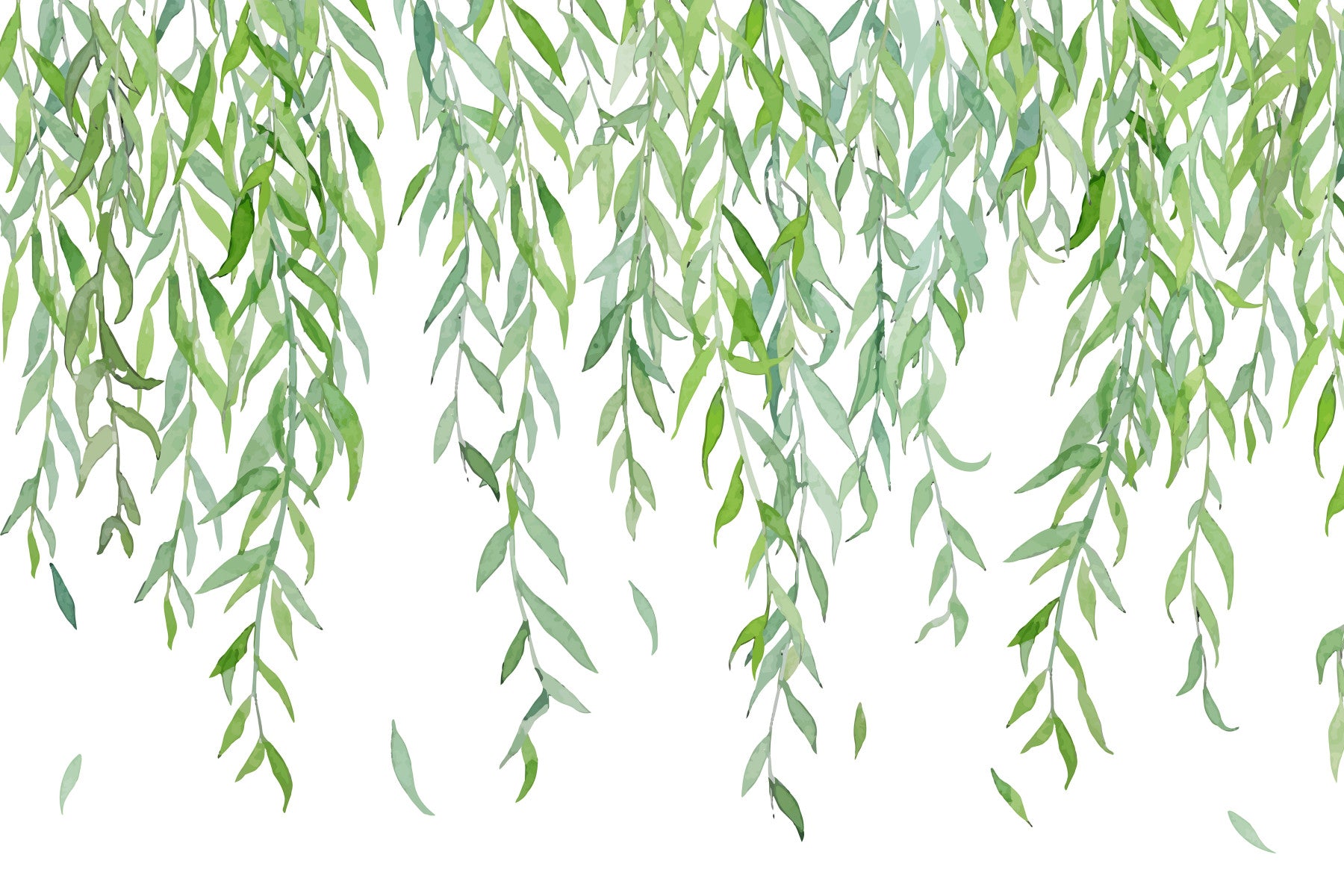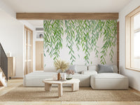 Immerse yourself in the tranquil beauty of "Hanging Leaves," a wallpaper that evokes a sense of serenity and natural grace. This design showcases elegantly cascading willow branches, their delicate leaves rendered in soothing shades of green. The watercolor style provides a soft, artistic touch, creating a calming and refreshing atmosphere in any space. Imagine the gentle sway of these leaves in a soft breeze, bringing the tranquility of the outdoors into your home. The simplicity of the design, set against a clean white backdrop, ensures that it complements a wide range of interior styles, from modern minimalist to rustic chic. Perfect for creating a relaxing bedroom, a calming study, or a refreshing living area, "Hanging Leaves" brings nature's peaceful touch to your everyday life. Let the beauty of nature inspire you.