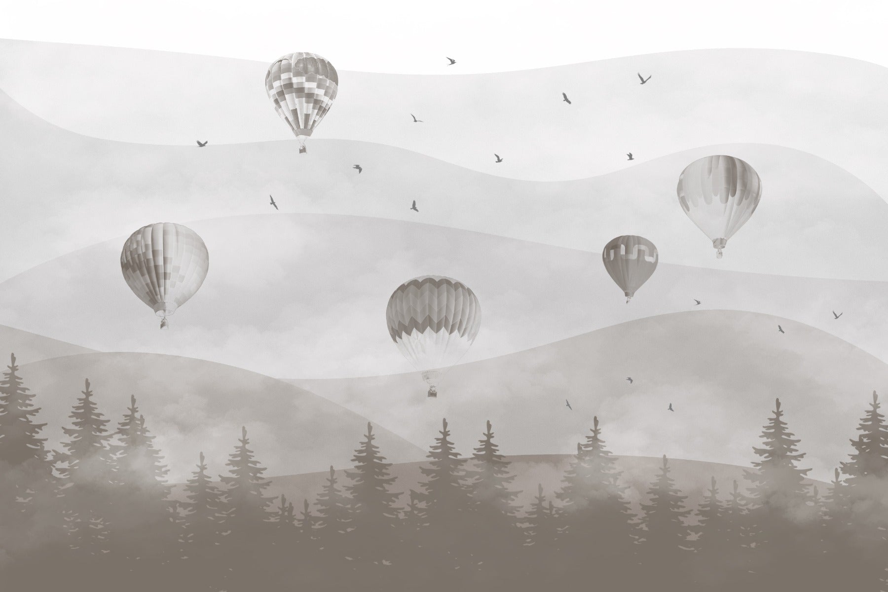 Create a space that is serene and dreamy with the hot air balloon wallpaper. Floating softly over rolling hills with a gentle, peaceful forest in the background, these beautiful subtly-toned hot air balloons decorate the design. It evokes a place of calm and wonder due to its absence of bright colors. Those muted gray tones and minimalist style make it so great for bedrooms, or children's rooms. Very pleasant and worthy of any modern serene interior. Made with hardwearing materials and easy to install and maintain, this wallpaper gives an everlasting look. The invigorated touch of adventure and grace that this beautiful, soothingly artistic wallpaper gives to your walls suffices to make a quiet retreat anywhere in the house.