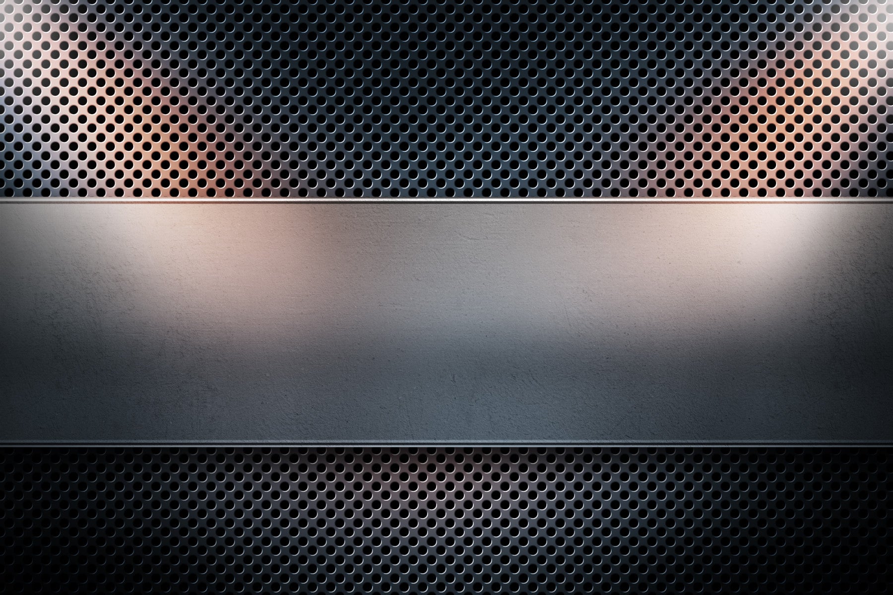 This wallpaper features a captivating industrial design, blending a textured metal plate with a perforated metal grate. The contrasting surfaces and subtle light reflections create a modern, edgy look. The predominant colors are silver, gray, and black, contributing to a cool and sophisticated atmosphere. Use this wallpaper for walls in your loft, home office, or studio to introduce a touch of urban style. The design can complement interiors with a metallic theme or minimalist aesthetics.