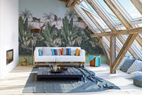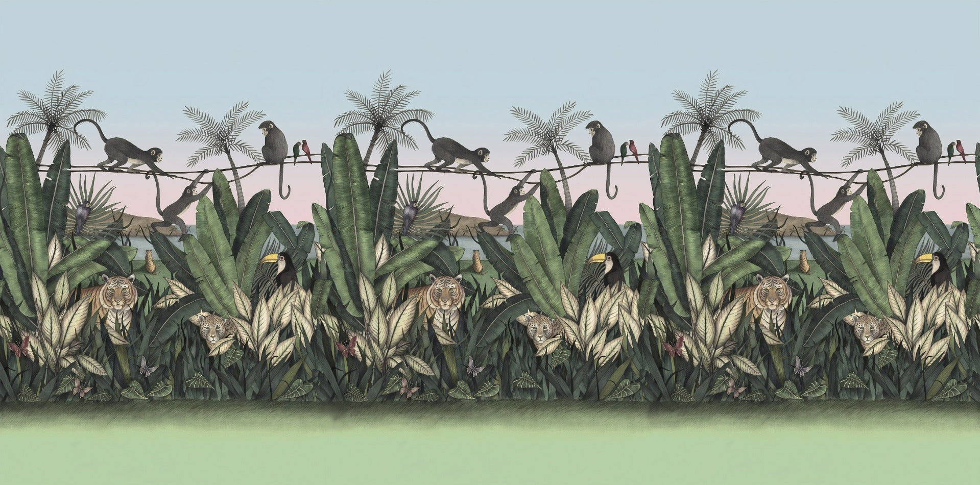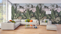 Find beauty in the jungle with the Green Jungle with Tiger and Monkey Animals Wallpaper. This gorgeous wallpaper depicts a lush green jungle with tiger and monkey animals, giving any room a serene and peaceful feel. The intricate details and lifelike illustrations of the jungle make it an excellent choice for a child's room, playroom, or nursery. Made from good-quality materials, this wallpaper is easy to install and will last years to come.