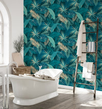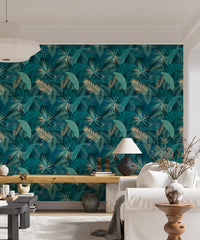 Discover the lushness of the jungle with our jungle palm leaf tropical wallpaper. This design infuses your room with the vibrant essence of a tropical paradise. The rich, detailed palm leaves against a striking backdrop captivate the eye, turning walls into a statement feature. Ideal for those seeking to infuse their home with nature's vitality without overwhelming it, this tropical wallpaper harmonizes with various decor styles. Bring the outdoors in and envelop your environment in the serenity of the tropics with this exquisite wall covering.