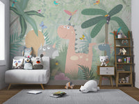 Kids Illustration Dinosaurs Jungle Cartoon Style Wallpaper Murals