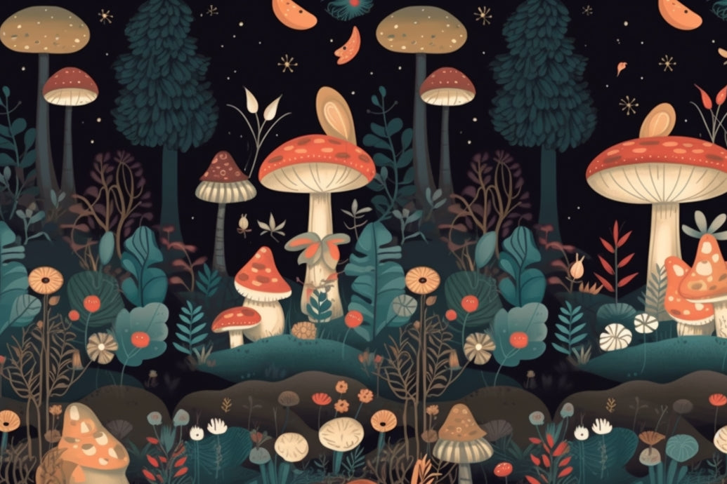 Mushroom wallpaper mural for a fun, forest-themed kids' room