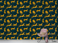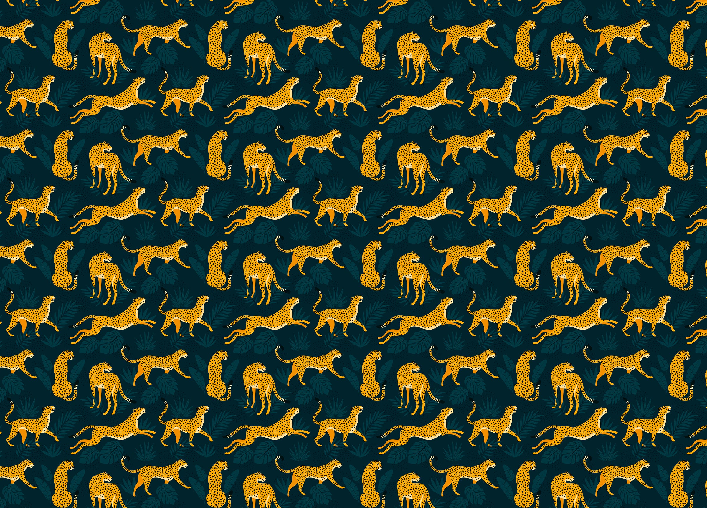 Fun wallpaper with leopards and tropical leaves for kids
