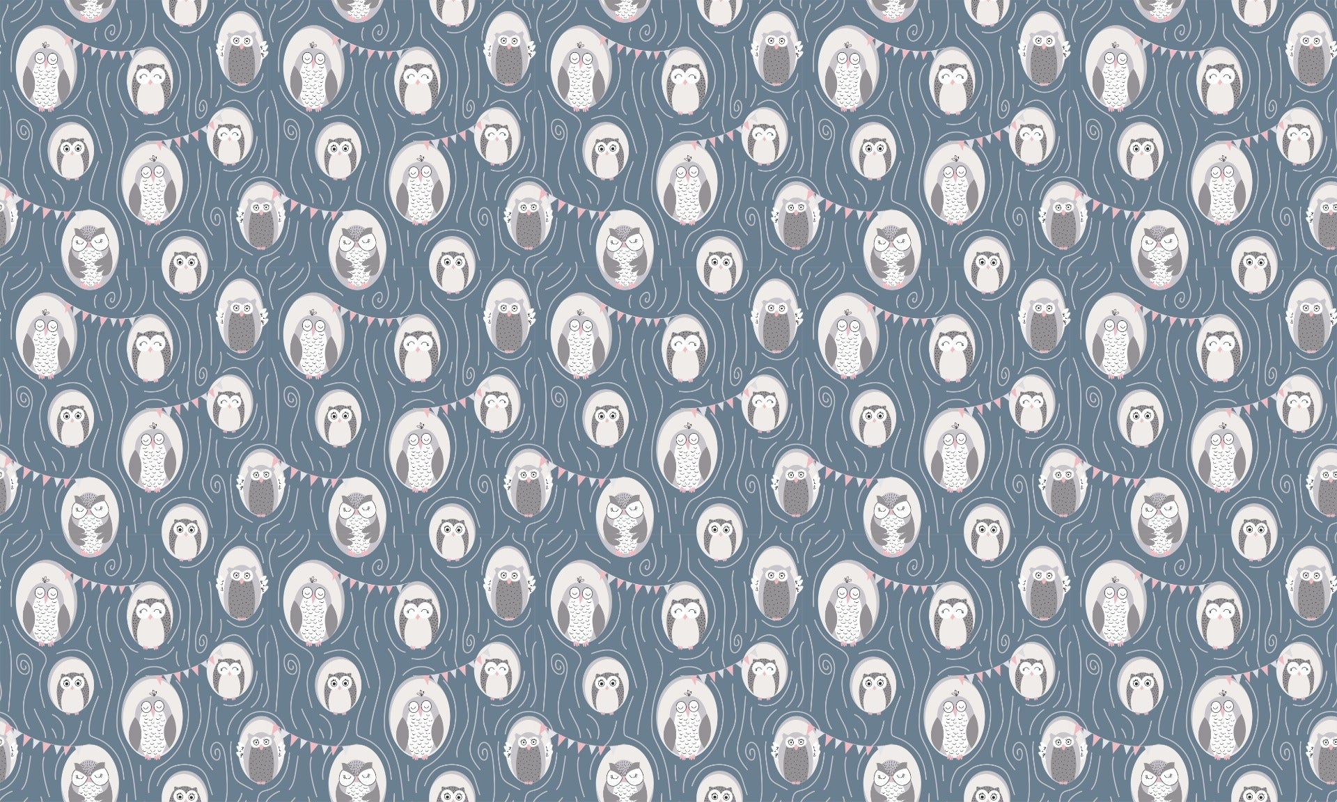 Playful owl-themed wallpaper featuring trees and burrow motifs