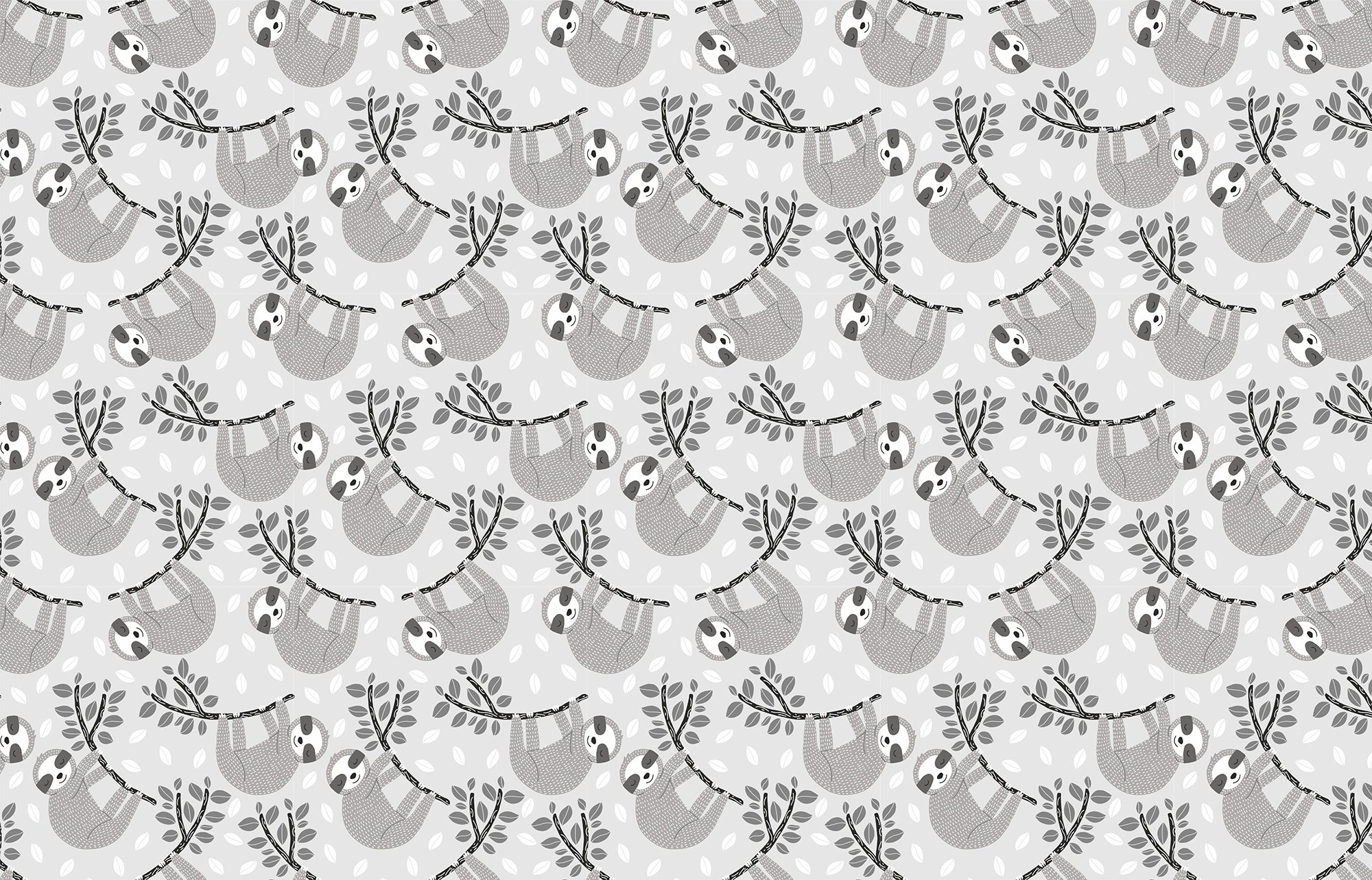 Peaceful sloths in lush leafy mural style