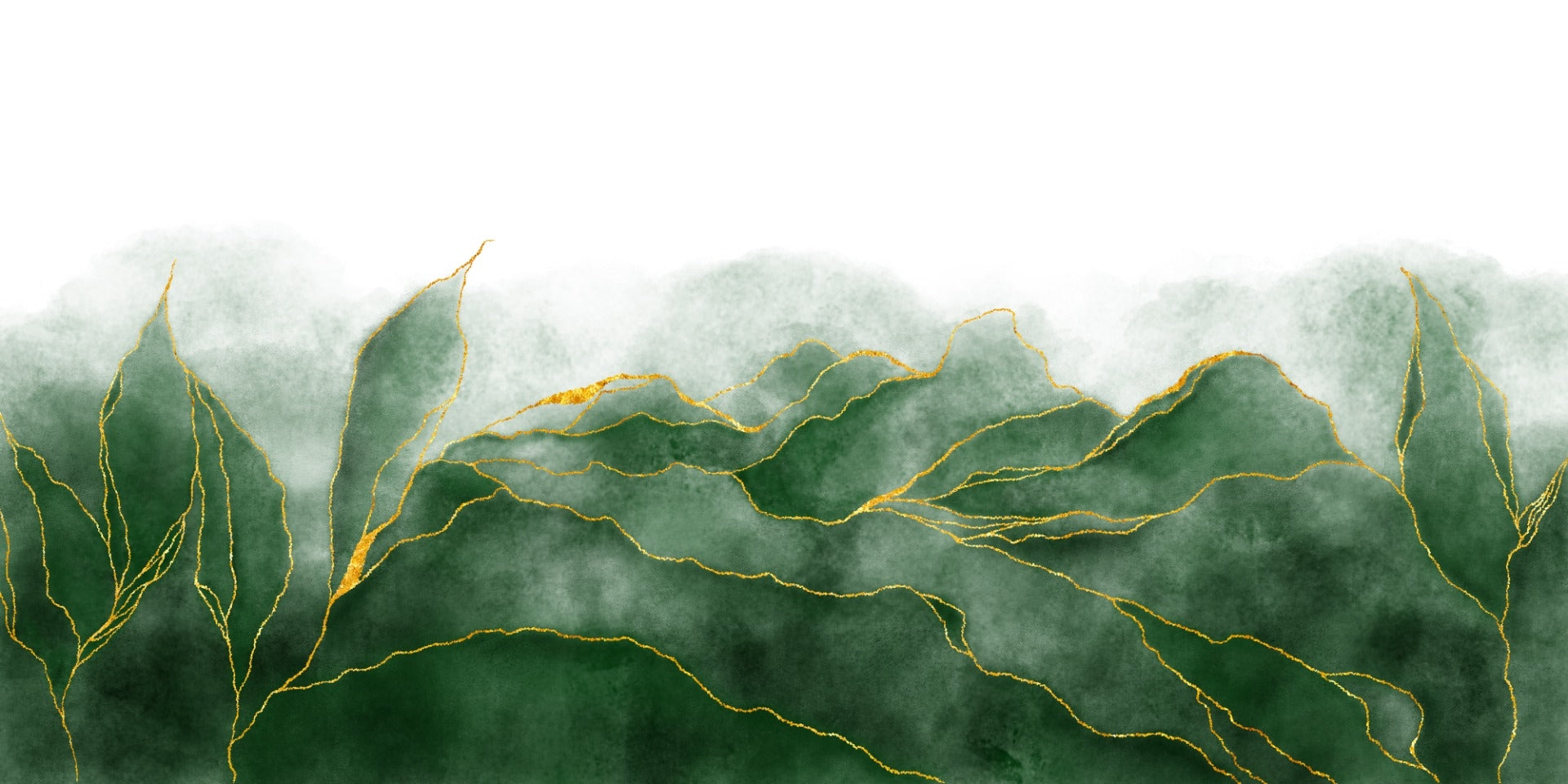 Elegant lush green wall mural with marble texture design