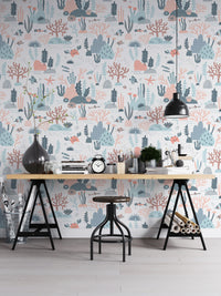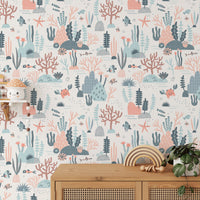 The marine life coral reef fish crab seaweed kids wallpaper is an enchanting selection for your little one's room. This removable wallpaper is designed with a vibrant underwater scene, full of playful fish, friendly crabs, and flowing seaweed, capturing the lively essence of the ocean. The wallpaper style is not only engaging but also educational, sparking curiosity about marine life. Its removable feature ensures easy application and adjustment, making room updates hassle-free. Ideal for fostering a love for nature, this wallpaper adds a splash of color and fun to any child's space.