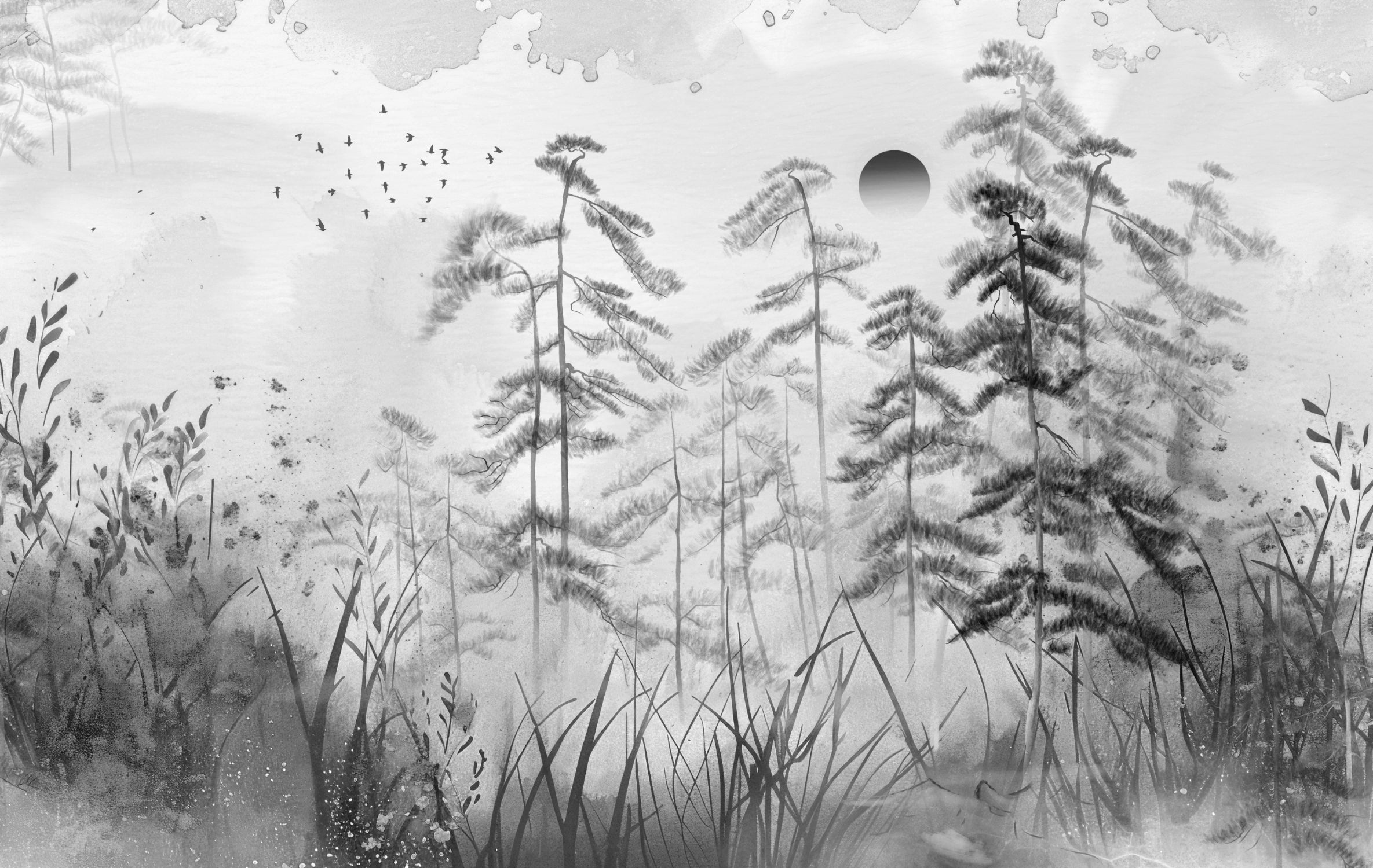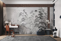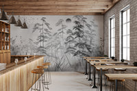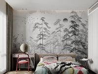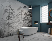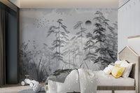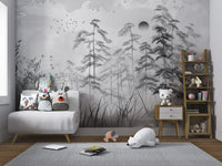 The grayscale misty forest landscape wallpaper is perfect for a peaceful atmosphere. This mural's gentle and soft forest elements create a sense of calmness beautifully. This mixture of misty trees with monochromes would give any room a more minimized and inviting appeal. It is, without doubt, the best combination for modern or rustic themes, with delicate tree silhouettes featured against a misty background that provides an understated yet captivating appeal. Enhance your living space with this forest landscape mural and enjoy its serene effect on your walls. Get it now and enjoy free delivery on your order.