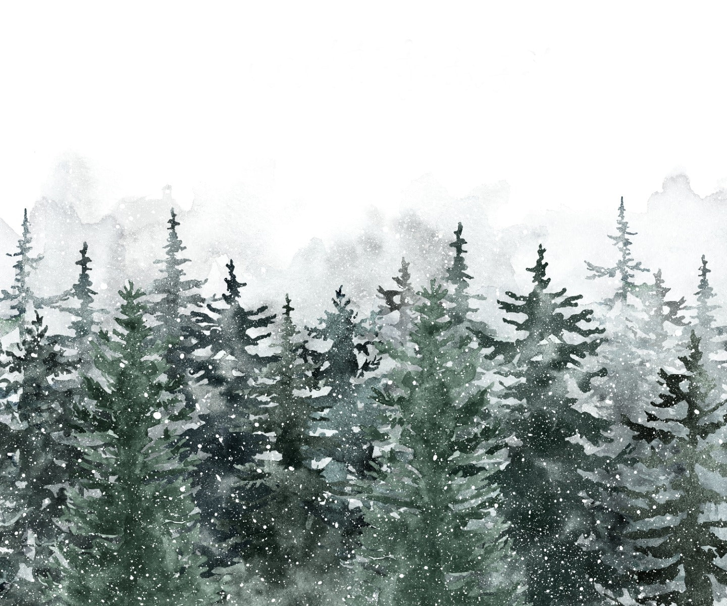 Scandinavian-style pine forest mural with misty green hues