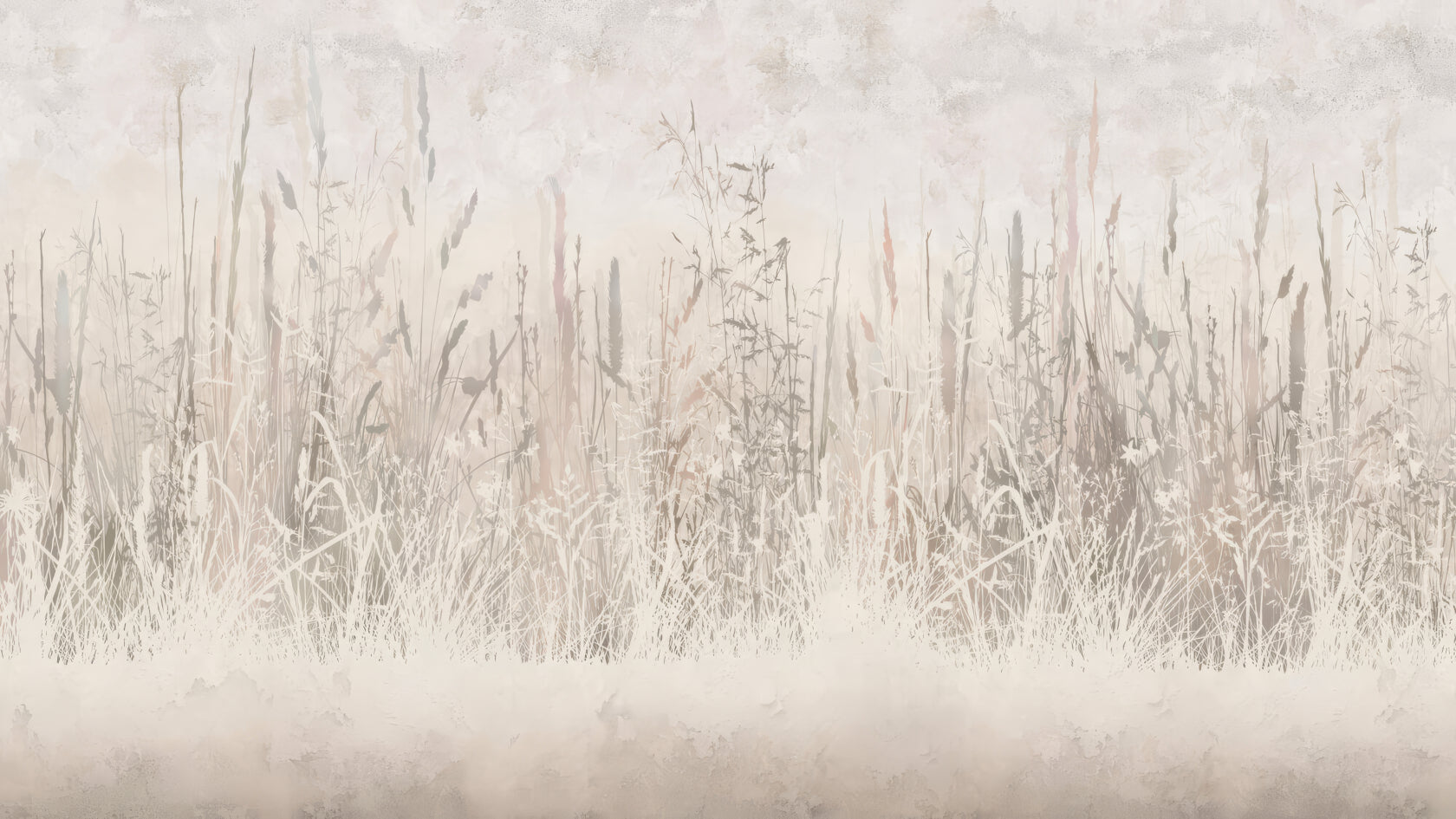 Soft and neutral mural featuring meadow grasses for a serene interior.